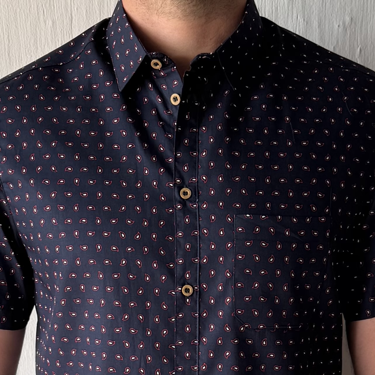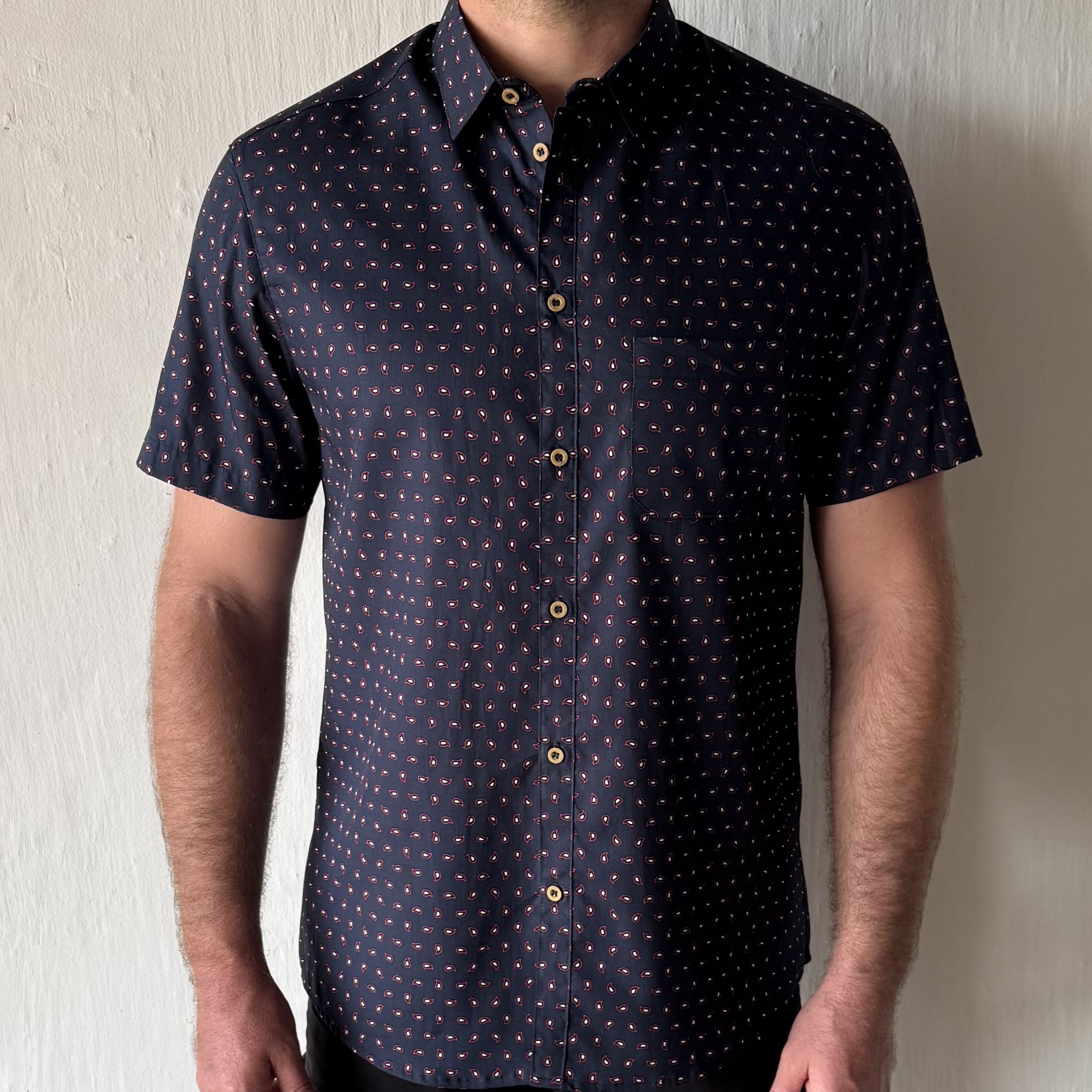 Short Sleeve Slim Fit Shirt in Printed Cotton, with pocket and centre back seam