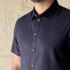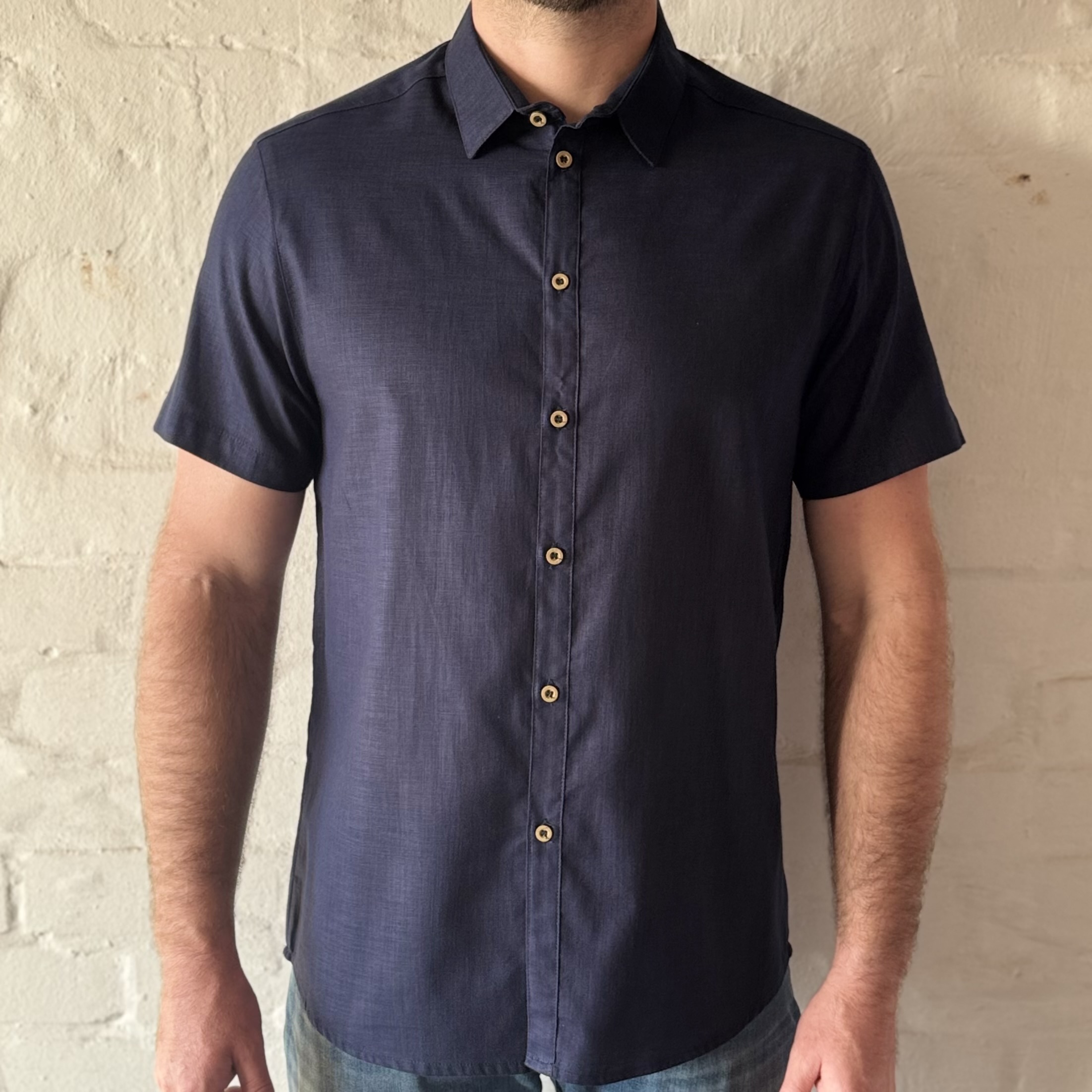 Short Sleeve Slim Fit Shirt in Linen Look Cotton with centre back seam