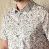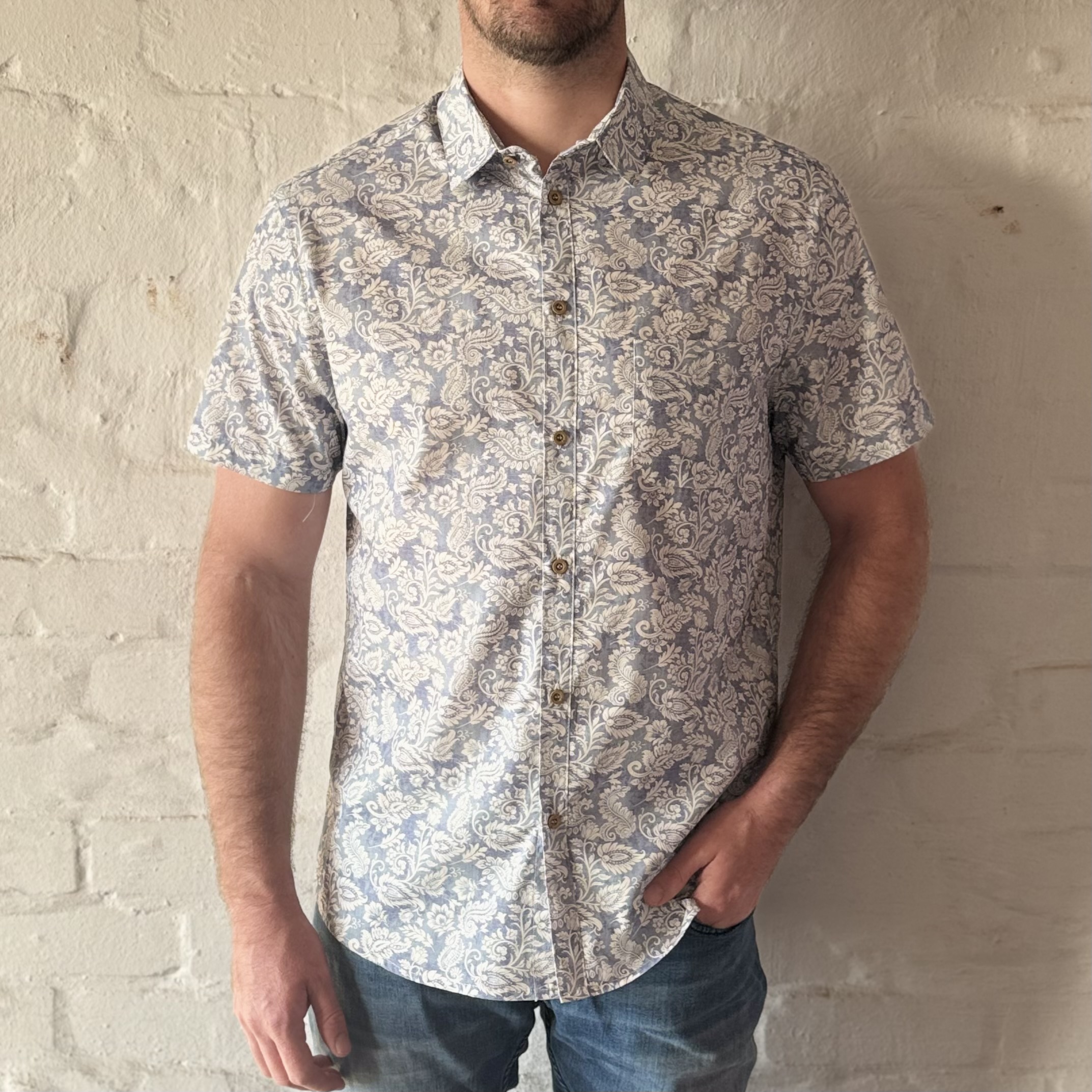 Short Sleeve Slim Fit Shirt in Printed Cotton, with centre back seam