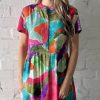 Tiered Maxi Dress with high waist, mandarin collar and short sleeve in printed viscose imported from Spain