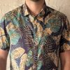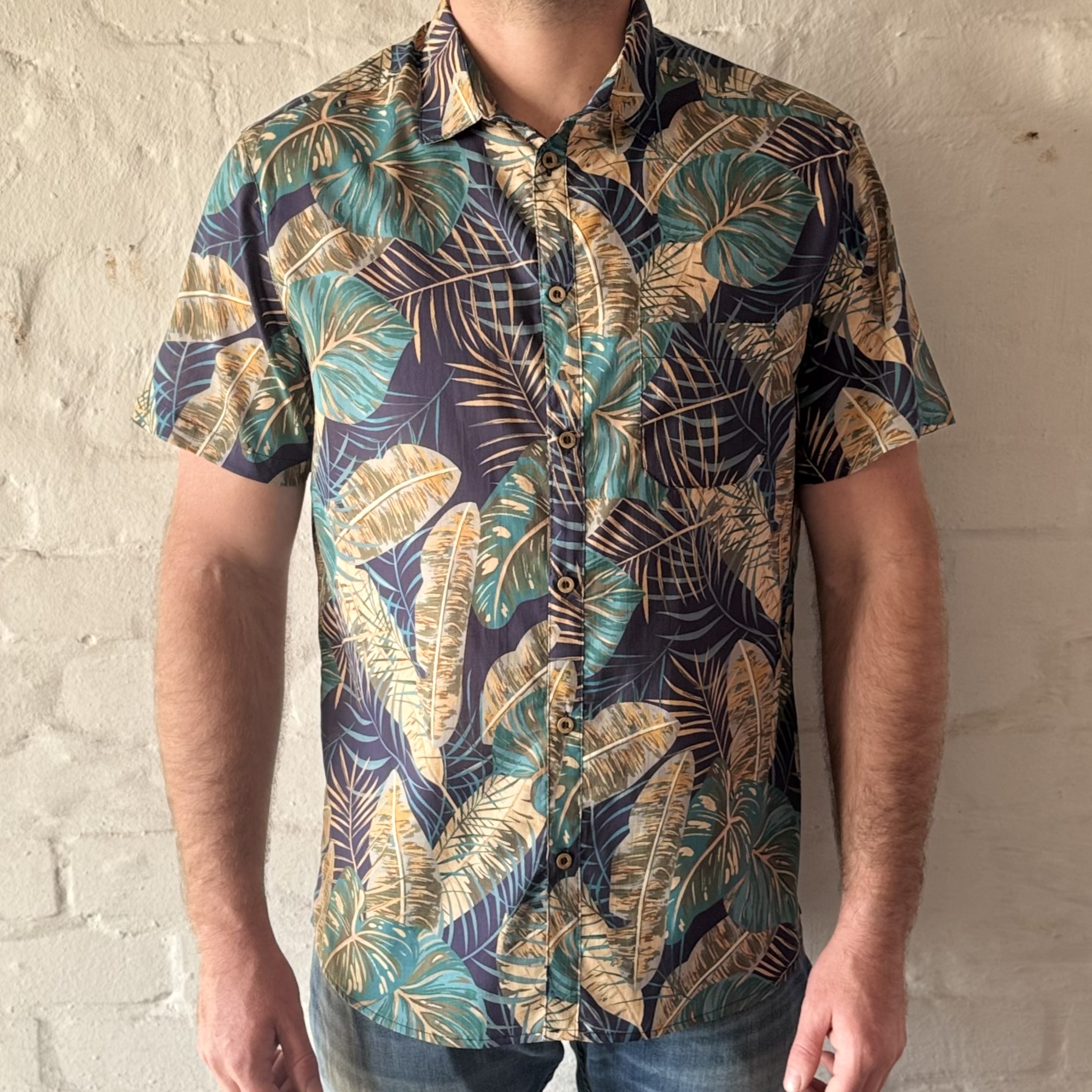 Short Sleeve Slim Fit Shirt in Light Weight Printed Cotton, with centre back seam