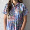 Tiered dress with high waist, collar and short sleeve in Digital Print Viscose
