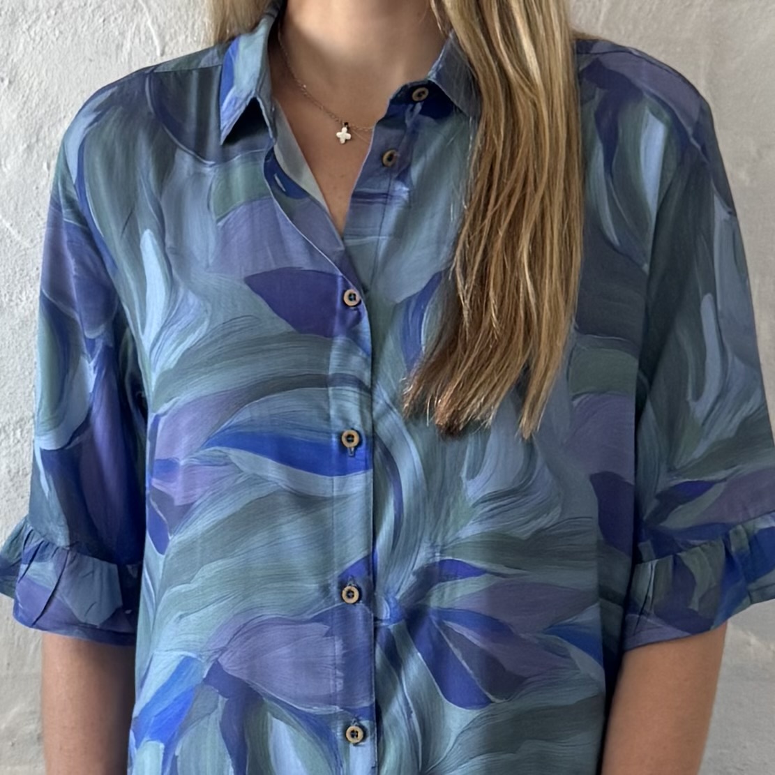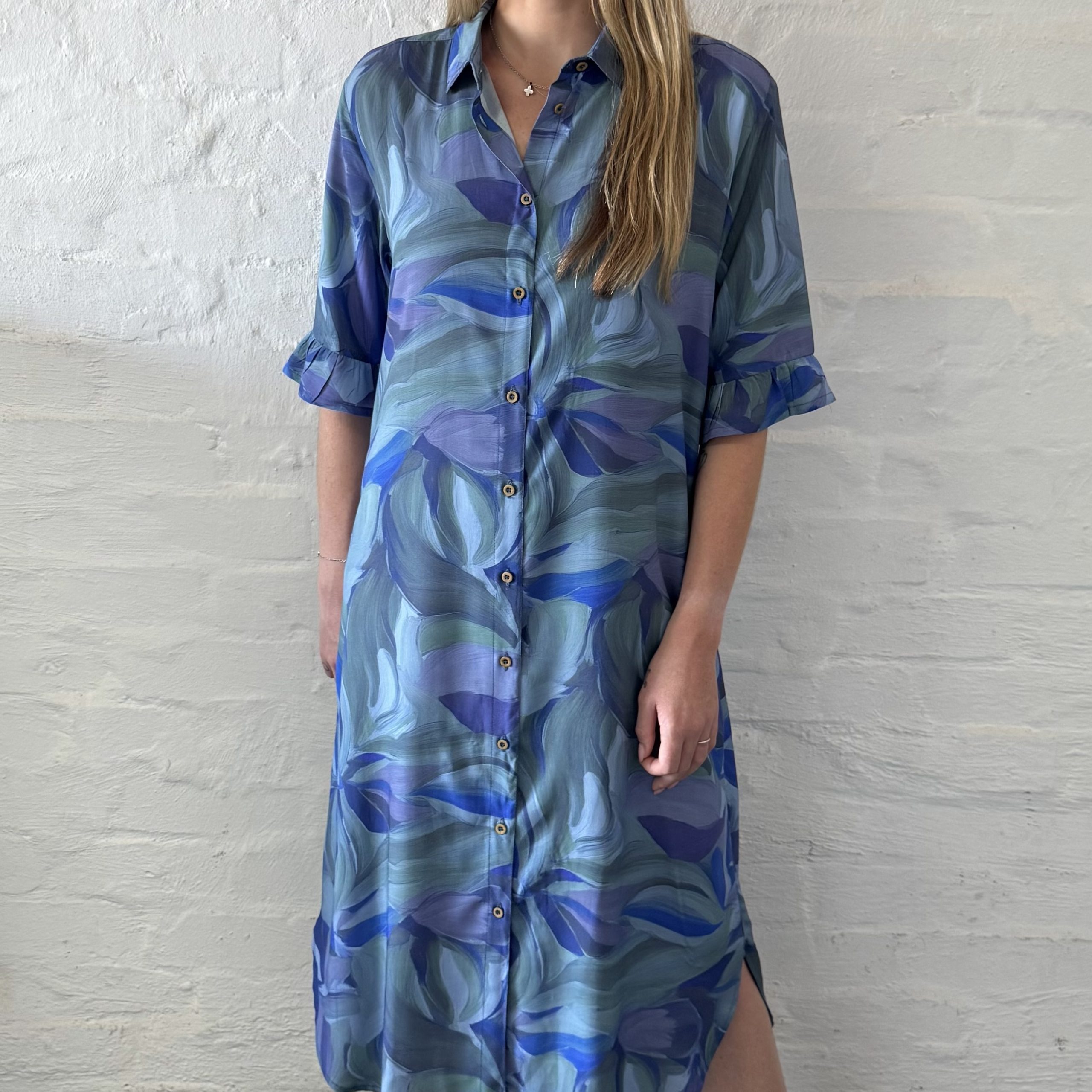 Shirt Dress in Digital Print Viscose, exclusive to HIS Apparel