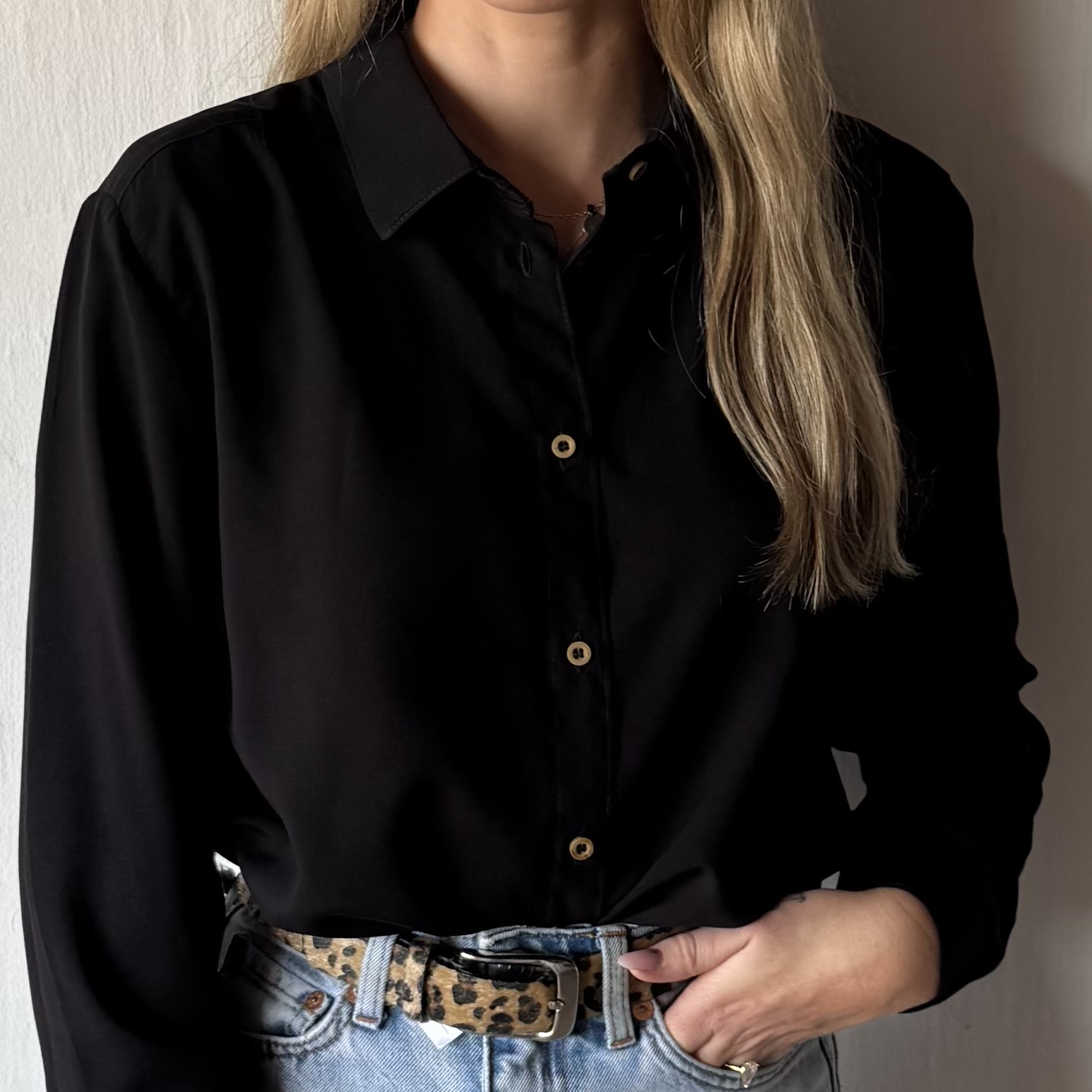Long sleeve rayon poplin button up Shirt with collar and centre back seam