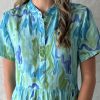 Tiered Maxi Dress with high waist, mandarin collar and short sleeve in digital print viscose (Exclusive to HIS Apparel)