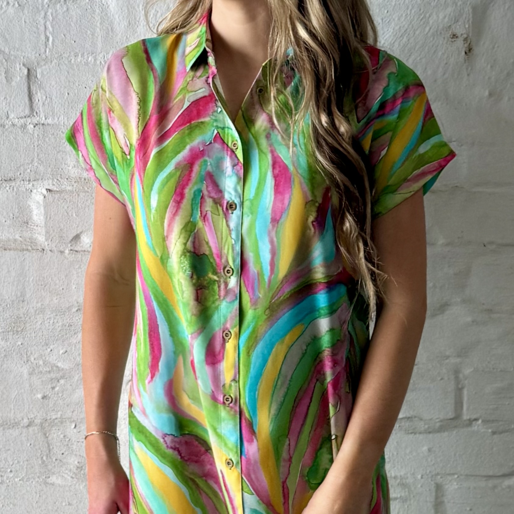 NEW CAP SLEEVE Shirt Dress in Viscose imported from Spain, exclusive to HIS Apparel